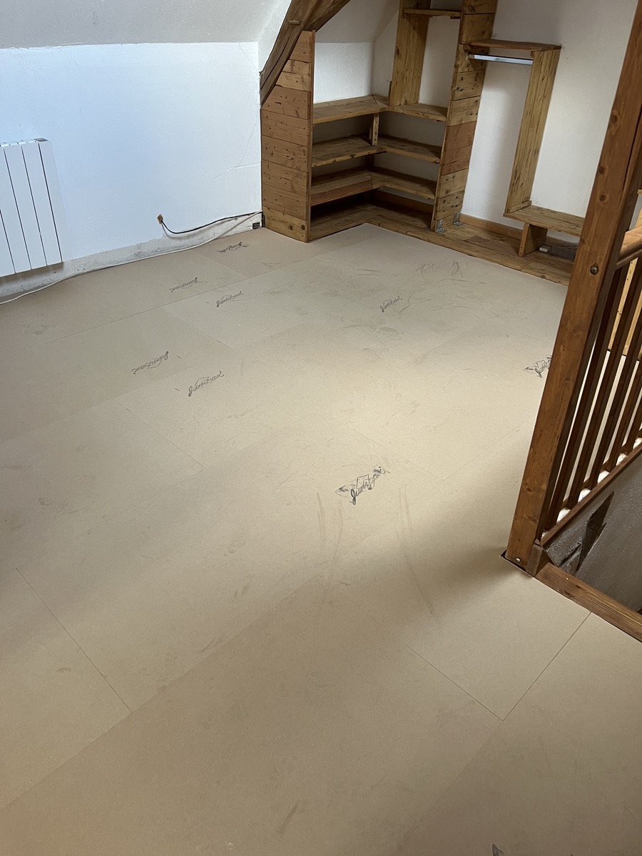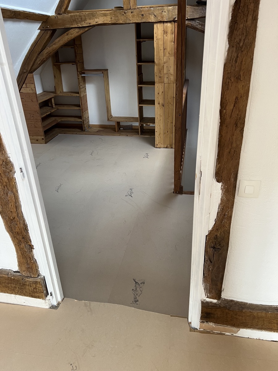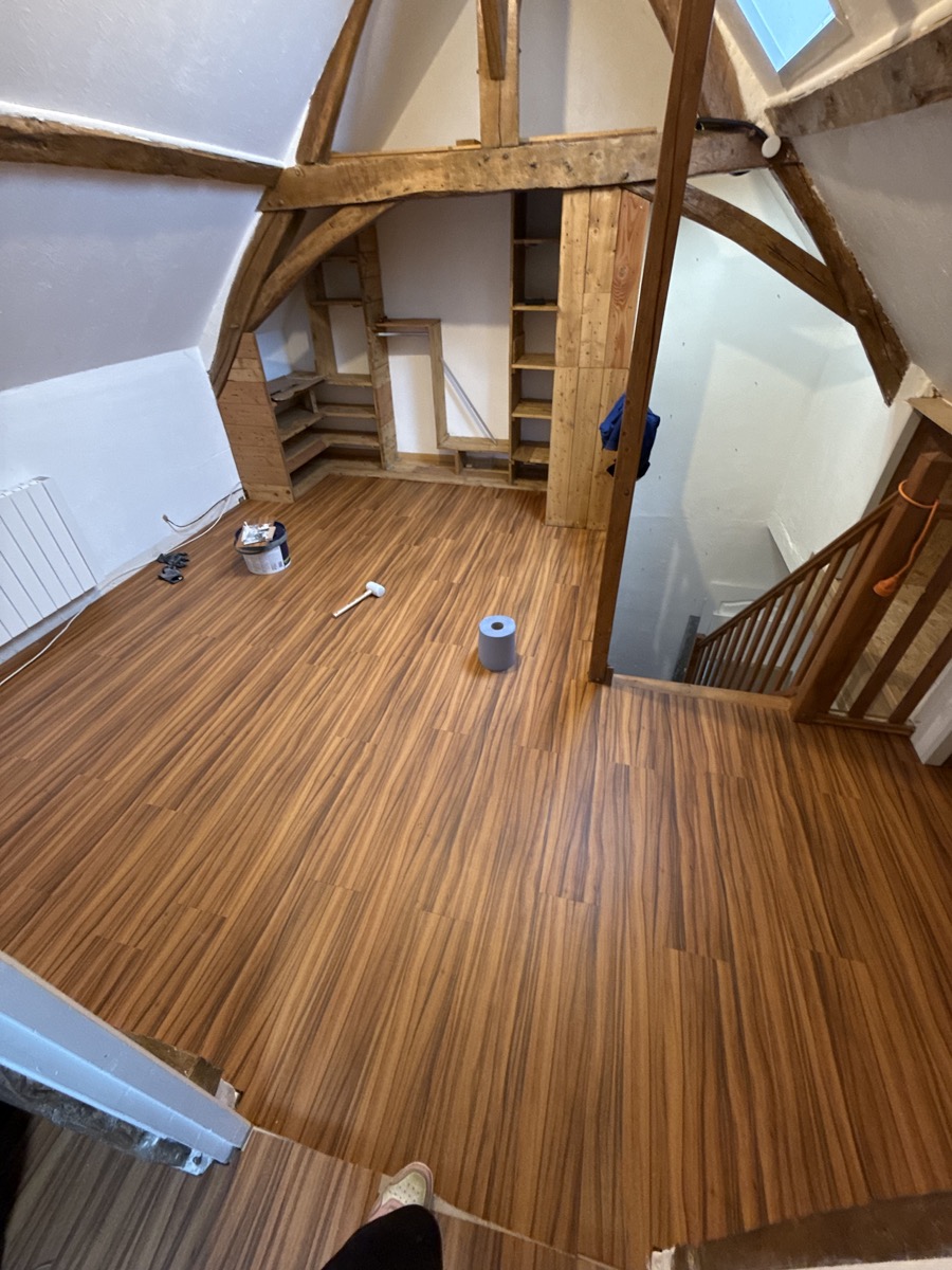 Lors de la rénovation de l’étage de cette habitation de 60 m² au Mans, Jumpax® Classic a été choisi pour sa capacité à offrir une surface parfaitement plane, prête à recevoir le nouveau revêtement de sol. La facilité d’installation et les performances acoustiques de cette sous-couche ont contribué à la réussite du projet, assurant un sol durable et esthétiquement plaisant.