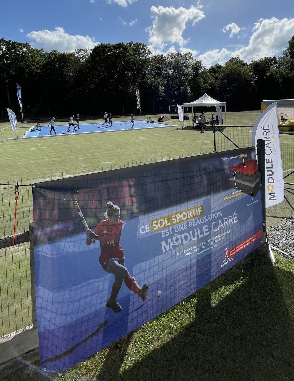 Le 11 et 12 juin avaient lieu les finales du championnat de France de hockey sur gazon à Cambrai, l’occasion pour Module Carré de présenter son sol clipsable sportif.