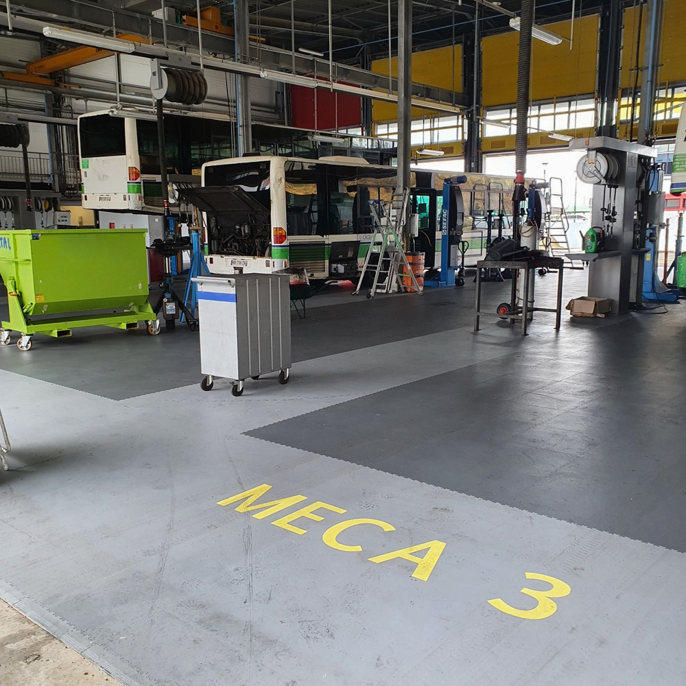 The secret of our tiles ? It is made from a rigid PVC which gives it a resistance to rolling machines up to 6.5 tons! This allows our tiles to withstand the traffic of most vehicles such as pallet trucks, electric stackers and even Fenwick loaded with several tons.
