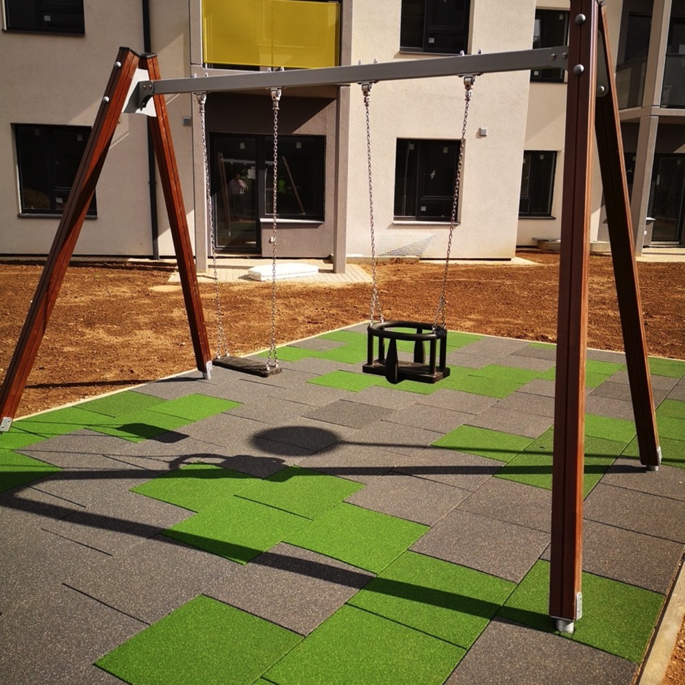 The base layer of our Module Kidz tile (≃ 95% of the product) is made of 100% recycled PVC. The manufacturing process is zero waste, as all rejected tiles and excess material are recycled on site.