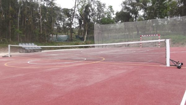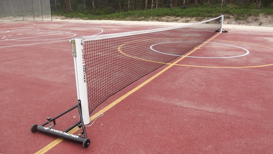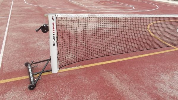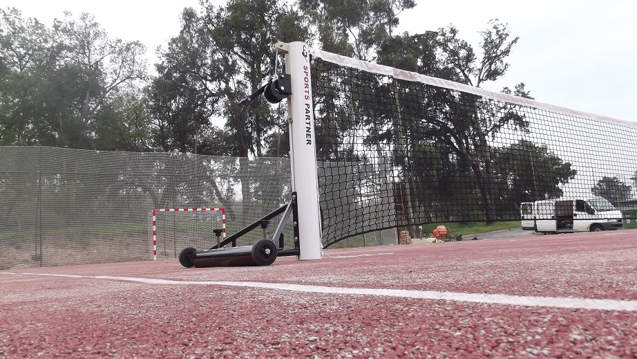 Pair of portable tennis poles, build in round, lacquered and reinforced 80mm aluminum profile.