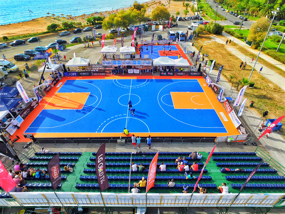 Het oppervlak van de Patmos-tegels heeft nauwe ruimtes om te voorkomen dat vingers of stenen erin blijven steken. Het is geschikt voor het beoefenen van alle disciplines, inclusief rolschaatssporten. Onze buitensportvloer is bijzonder geschikt voor het spelen van Futsal.