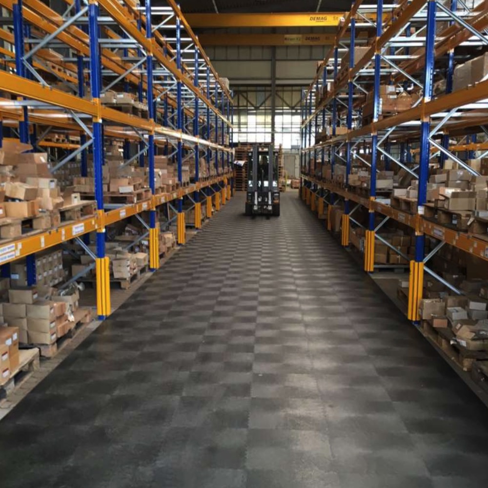 Cette fois-ci, on ne parle plus de millimètres mais bien d’une dalles pvc pour entrepôt de plus d’un centimètre ! L’environnement industriel, sa complexité technique ainsi que le poids des engins les composants évoluent chaque jour. Fort heureusement, notre dalle PVC résiste à toutes les agressions roulantes (chariots, Fenwick, etc.) jusqu’à 10 tonnes !