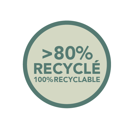 La couche support de notre dalle Module Kidz (≃ 90% du produit) est constituée de caoutchouc 100% recyclé. La fabrication se fait également sans gaspillage, car toutes les dalles non conformes et l’excédent de matières sont recyclés sur site.