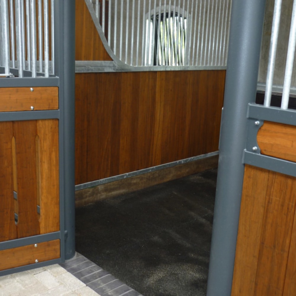 Fabriquées à partir de caoutchouc recyclé de haute qualité, ces dalles sont 100 % circulaires. Elles sont disponibles en plusieurs épaisseurs et coloris. Leur structure est perméable à l’humidité, favorisant un environnement plus sain pour les chevaux.