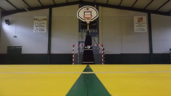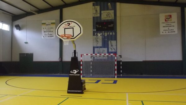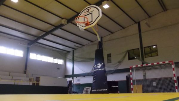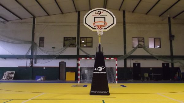 Support en métal incluant le panneau, l’anneau et le filet en polyester renforcé.