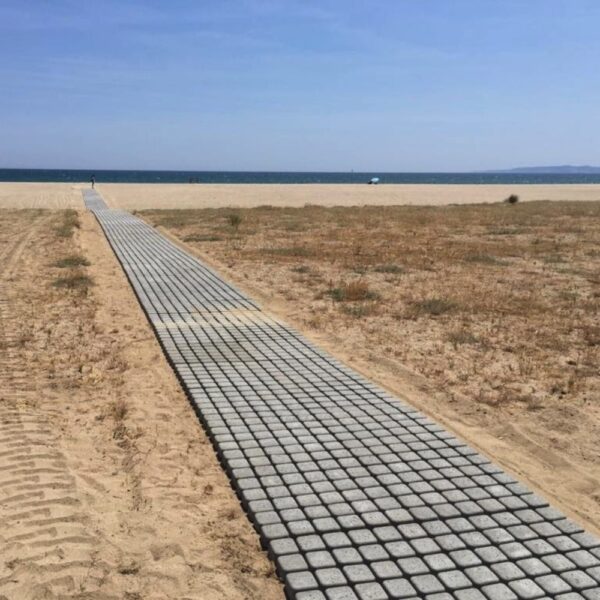 As nossas pedras de pavimentação Módulo Sólido X60mm permitem uma fácil circulação das pessoas em situação de deficiência. Em França, de acordo com o artigo 9 do decreto de 20 de abril de 2017, admite-se que é necessária uma largura de 70cm para a passagem de uma cadeira de rodas: bastará montar 2 lajes Módulo Solid X60 para obter uma largura de 1m. É a solução de construção ideal para criar um pavimento exterior, temporário ou permanente, que garanta a mobilidade de todos. Este pavimento foi também concebido para suportar cargas pesadas, como o tráfego de camiões ou automóveis. Como pode ver, também podem ser utilizados em zonas de armazenamento, armazéns e parques de estacionamento.